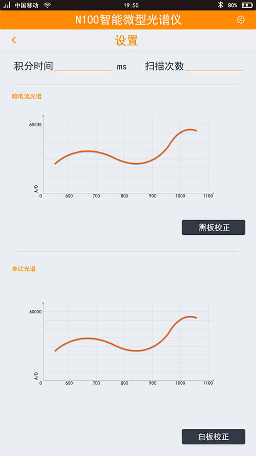 該軟件基于Android平臺開發(fā)和使用,中文界面,界面友好,操作簡便、人性化設置。具有暗電流掃描、參比掃描、樣品掃描、查看/顯示光譜、下載模型、調用模型等主要功能。